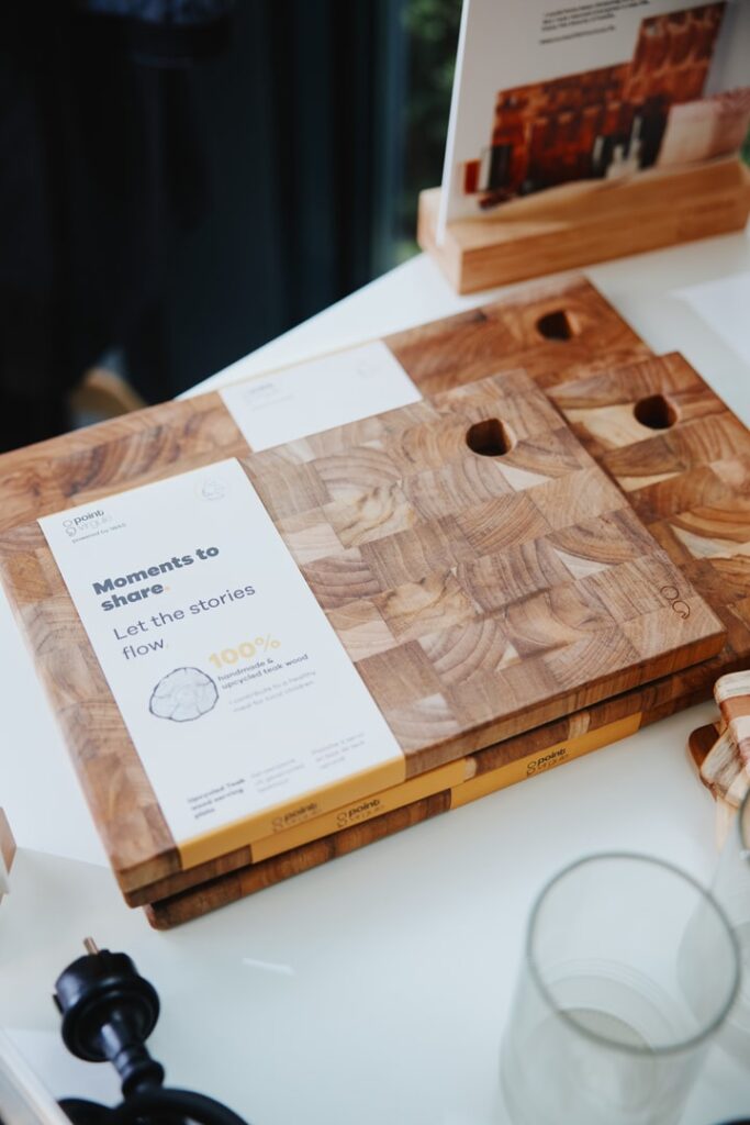 Point-Virgule stelde tijdens de Press Days een rijk assortiment voor met must haves voor keuken, eetkamer en living. Het is een Belgisch merk die gekend staat voor kwaliteit, innovatie, gebruiksgemak en een snuifje design. De collectie die ons meteen opviel was de IWAS upcycled collectie. Dit is een collectie met IWAS, een Belgische start-up. Zo werden glazen en karaffen gemaakt uit wijnflessen en bierflesjes, werden oude koffieboonzakken omgetoverd tot nieuwe unieke gebruiksvoorwerpen als broodmandjes en pannenlappen en werden uit houtresten (die anders worden weggesmeten) mooie snijplanken gecreëerd. De producten kan je vinden op hun website.